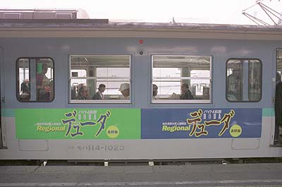 しなの鉄道の車両に、広告がはいりました。 S7編成の中間車、モハ114−1023です。 しなの鉄道の増収策の1つと思われます。