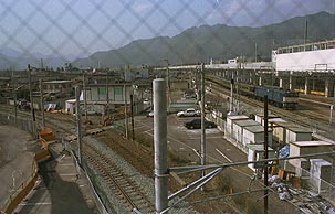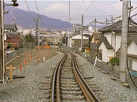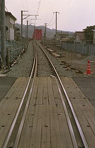 以前のレールは剥がされ、高架線の建設工事が本格化しています。