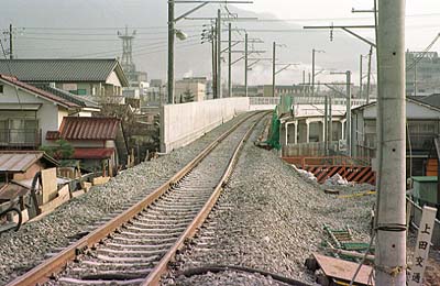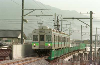 上田発の初電の入線 上田駅 上田交通・別所線 1998/3/29 新線と旧線跡 上田駅 上田交通・別所線 1998/3/29 高架をゆく7200系 上田交通・別所線 1998/3/29